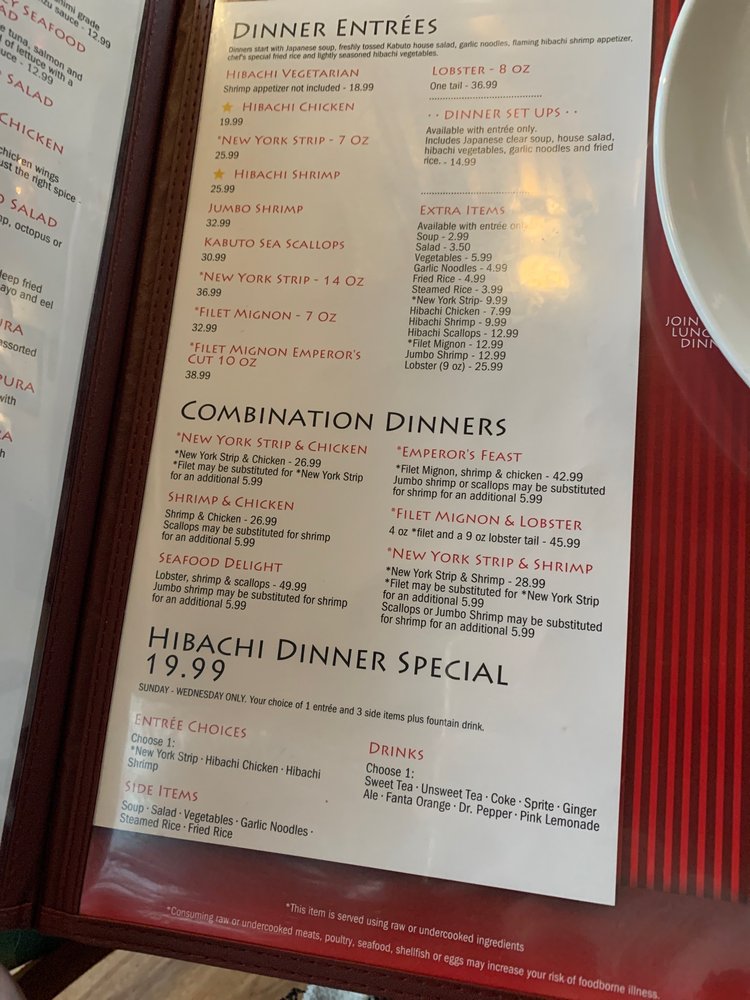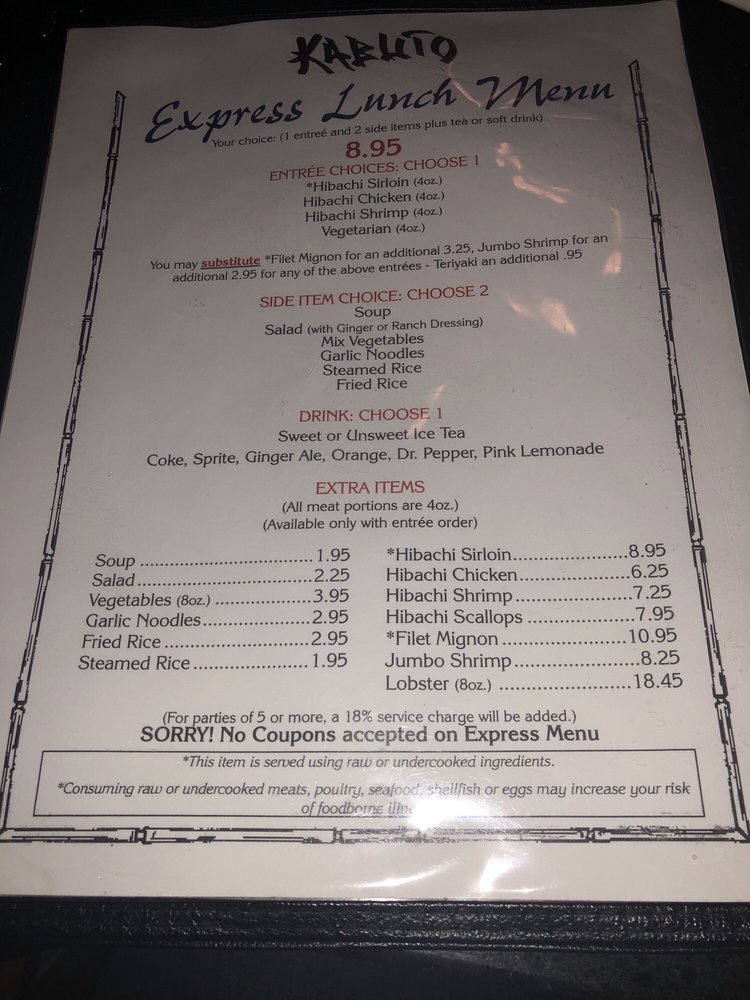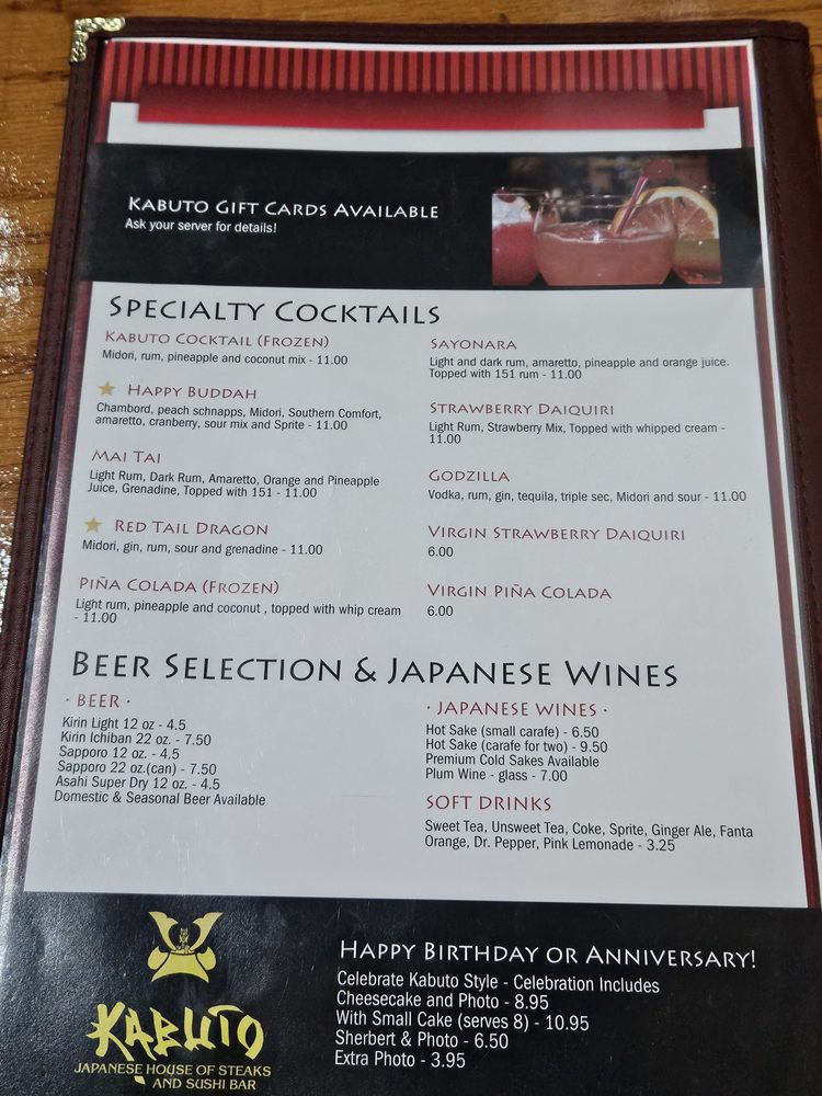 Kabuto Japanese Steakhouse & Sushi Bar Menu (Update 2025)
