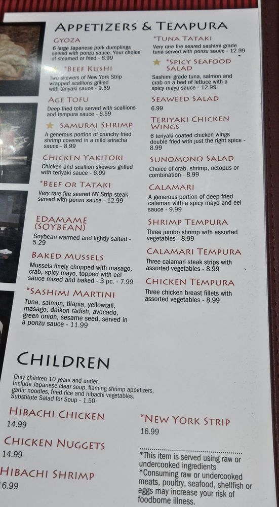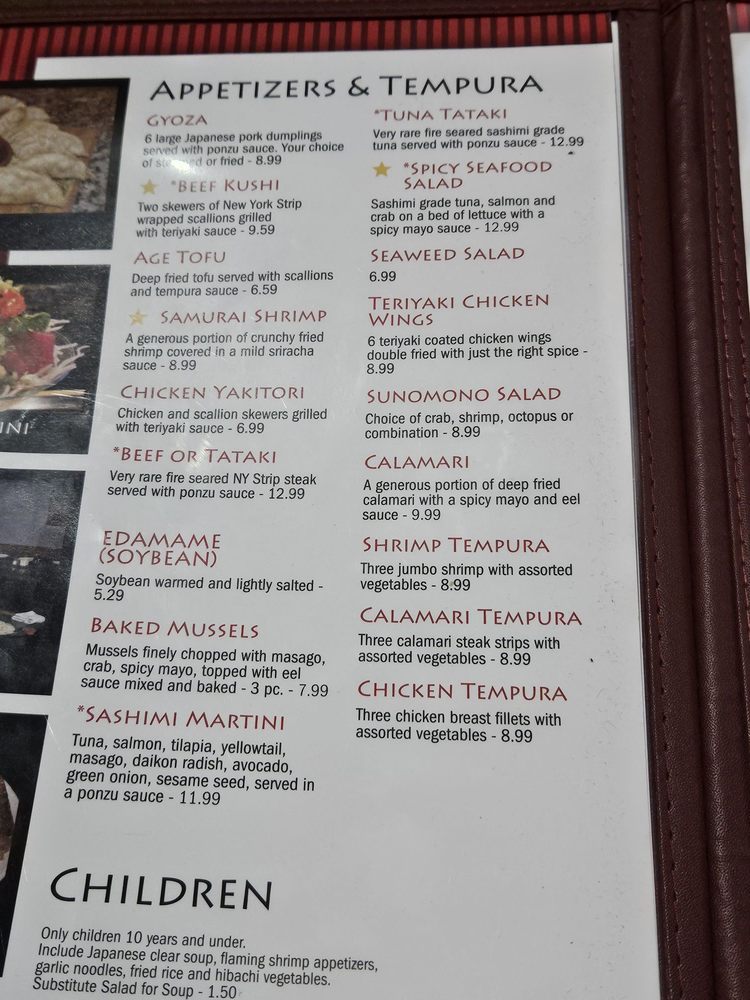 - Appetizers: Begin your journey with tantalizing options such as Beef Kushi and Shrimp Tempura, perfectly complemented by savory garlic noodles.